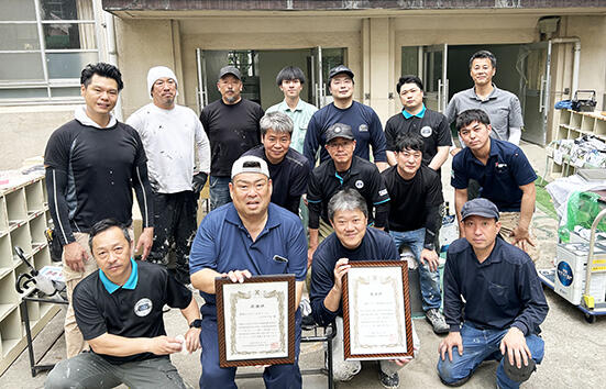 当日は、関西ペイント・杉田広訓氏による「周りの人に気をつけながら好きなように塗ってください」の掛け声で作業がスタート。わずか1時間で塗り上げた。使用塗料は「水性セラマイルド3分つや」、副資材は好川産業が提供した。