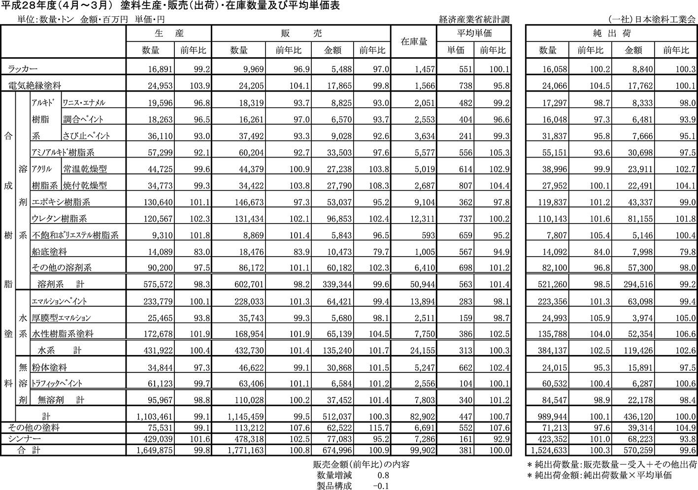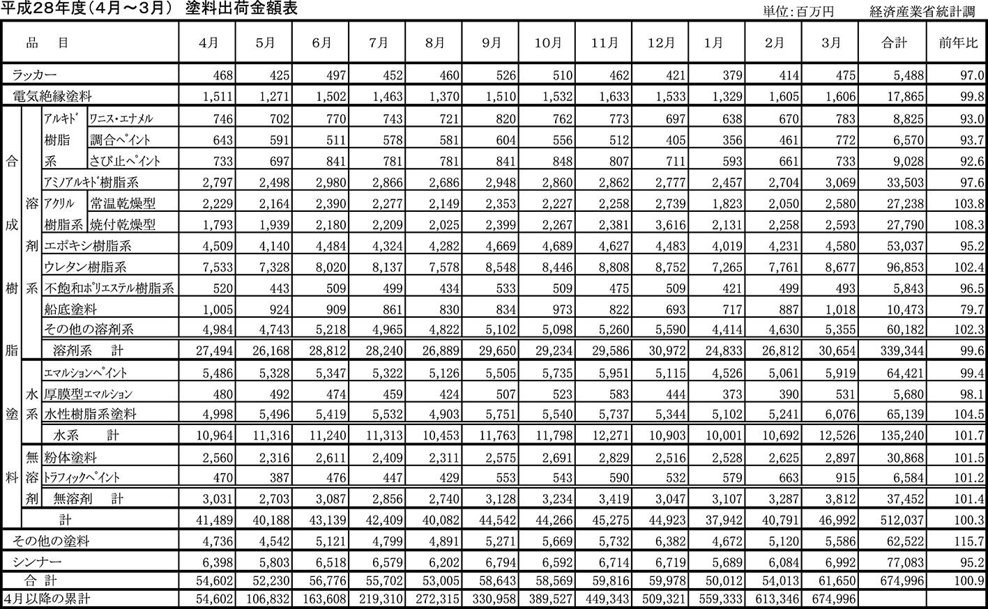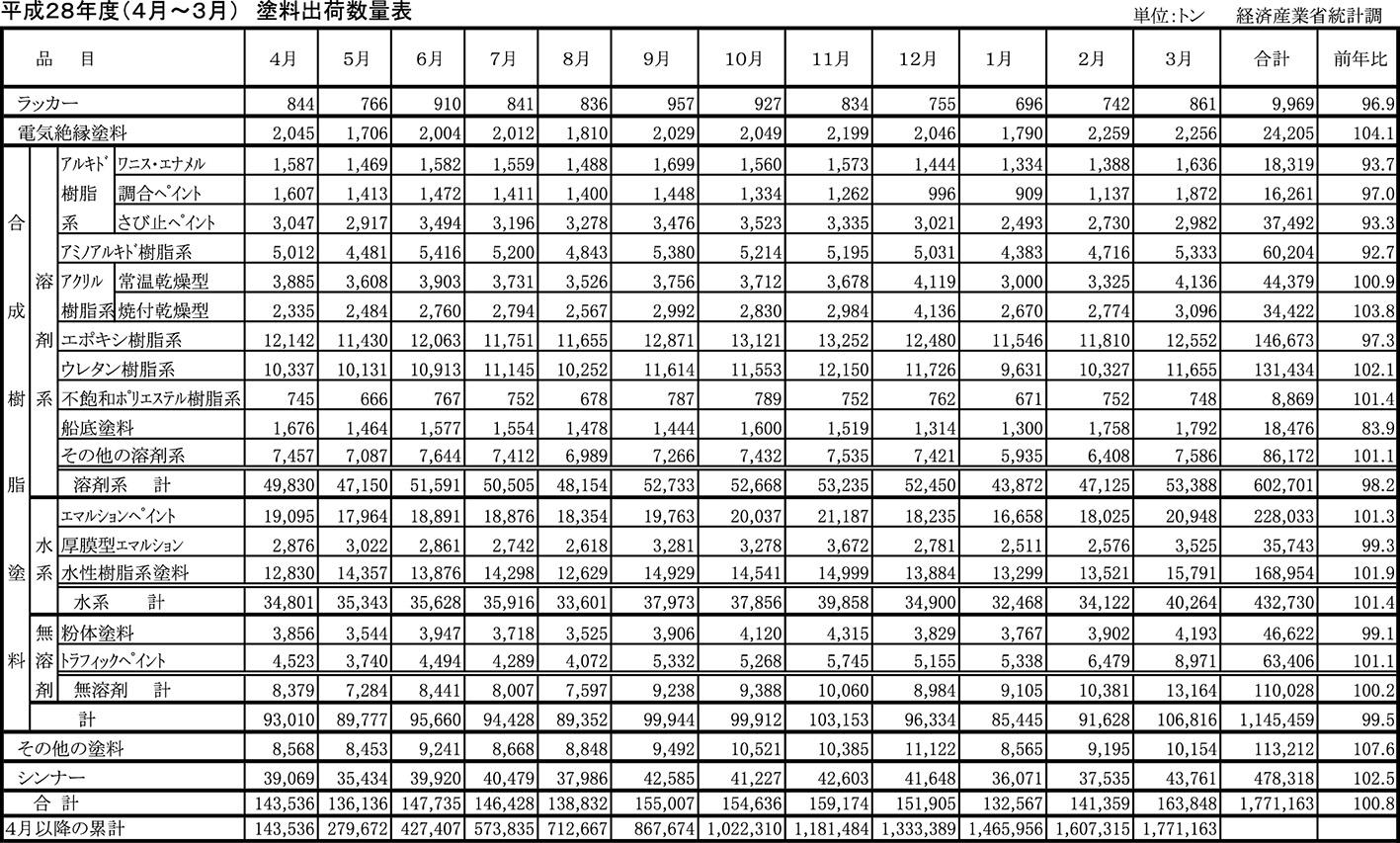 平成28年度塗料出荷統計