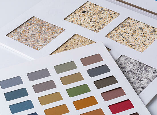 近年、経費削減から印刷カタログや電子カタログの活用が増えている。それでも色決めの最終段階においては、色見本帳や塗り板は不可欠。中でも多彩模様やメタリックなどの意匠性塗料は、印刷やデジタルの及ばない領域として価値を堅持する。