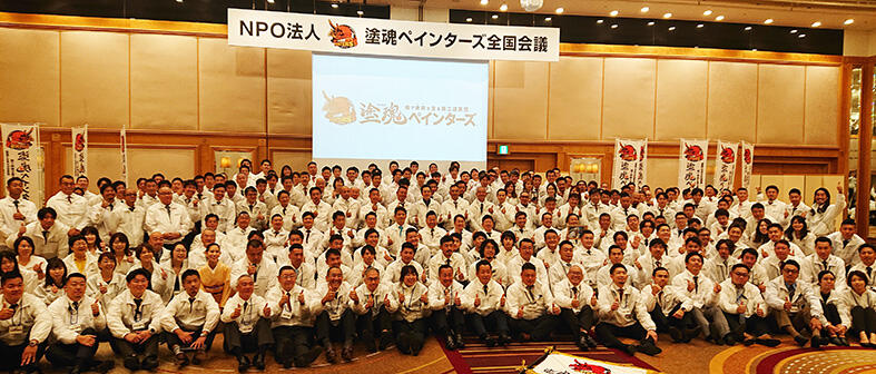 2023-11-01 2023:11:01:15:12:21 NPO法人化、世の中にインパクトを 全国会議に300名参加 塗魂ペインターズ Tweet 塗装ボランティア活動の団体である塗魂ペインターズは、「2023年塗魂ペインターズ全国会議in神奈川」を10月5日、横浜ロイヤルパークホテルで開催した。会場には全国から会員や協賛メーカーなど約300名が出席した。塗魂ペインターズは「塗装でできる社会貢献」を理念に全国で塗装によるボランティア活動を行う団体。全国13エリアに拠点を有し、会員数は250社を数える。2009年の発足から全国各地の160カ所でボランティア活動を実行している。全国会議であいさつに立った宮嶋祐介会長は「北は北海道、南は九州、鹿児島まで日本全国からたくさんの人が参加してくました。本当にありがとうございます。この素晴らしい全国会議の企画、そして準備をしてくれた神奈川塗魂の皆さん、ありがとうございます。今日は横浜の地に約300名メンバーが集まってくれています。今までの全国会議で一番の規模感じゃないかと思っています。ボランティア活動には1つ1つにすべてストーリーがあると思います。それが我々にとってかけがえのない財産、それが塗魂ペインターズに在り方ではないかなと思っています。今年の塗魂ペインターズの目標が、日本全国襷(たすき)ボランティアとして北海道から九州まで日本全国でボランティア活動を実施することでした。残念ながら新型コロナの影響によって、ボランティア活動自体が自粛されました。ただ我々はそれを行うために集った団体です。ですから昨年全国会議の場でここからもう一度社会を良くしていこう、そして塗魂ペインターズが日本を明るくしていこう、そういう強い思いを持って皆様に少し強引なお願いだったかもしれませんが、お伝えをさせていただきました。あれから1年、おかげさまで全国13エリアすべてでボランティアを実行しました。皆様ありがとうございました。もっともっと世の中に広げていくべきだと思います。ですから2030年日本全国1,000社の会員とともに日本を我々の力でもっと良くしていこうじゃないですか。ぜひ心を1つにここから歩んでいきましょう」と熱く述べた。更に宮嶋会長は塗魂ペインターズのNPO法人化を報告。「これからは公の団体としてもっと世の中にインパクトを与えていきたい。ここから新生NPO法人塗魂ペインターズとして、より活動の幅を広げてもっともっと社会に貢献していきましょう」と呼び掛けた。また、2016年から2代目会長として会を引っ張ってきた宮嶋会長は来年3代目に継承することを発表。「いつの時代も青年が時代を変えていきます。塗魂ペインターズが未来永劫繁栄するためにも3代目へとバトンをつなげていきます」と報告し、来年10月10日に開催する全国会議で継承式を行う。その後、来賓としてアステックペイント代表取締役・菅原徹氏があいさつした他、ボランティア活動動画の上映などが行われた。また、エリア実績発表では北関東塗魂エリアと神奈川・山梨エリアからの発表があり、実施したボランティアの様子や勉強会について報告した。その後は会場を移して懇親会が行われ盛況裡に散会した。 20231018-3-2 20231018-3-3 関連記事 複合的な危機、突破力で乗り越える 全国会議を開催 塗魂ペインターズ 塗魂ペインターズ会員への商材提供開始 日本塗装名人社(JPM) 総勢100名が参加、校舎をペイント 関西ペイント/RSプラチナ会 住宅塗装、「30年周期説」回避へ向けて 建築塗料・塗装特集マーケットレビュー2025春 「ひめゆり平和祈念資料館」をボランティア塗装 塗装で体現"ゆいまーる"の精神 塗魂ペインターズ