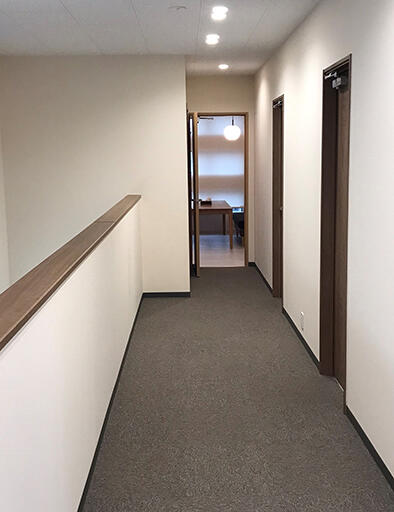 同社は内装塗料の普及にも精力的で、新社屋の内装仕上げでその姿勢を体現した。間接照明の光と塗装仕上げの壁とが織りなす上質な空間は、一般的なオフィスと職場環境の差が歴然。訪れた人に"ステキな会社"との印象を抱かせ、その洗練されたオフィスで人が働いている光景が、「人材採用へのフックになる」との狙いもある。