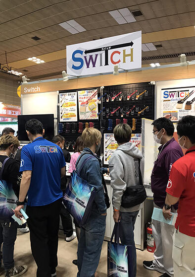 「SWITCH」は、軽量で洗浄性に優れるアルミ製のハンドルに、ヘッドを着脱して使用できる新時代の刷毛。ヘッドを交換して長く使えるコストパフォーマンスに加え、廃棄物を減らせるSDGsの観点からも話題を呼んでいる。溶剤用(伯爵)と水性用(伝翔)のヘッドに加え、溶剤・水性兼用の新たなヘッド「マルチバリュー」を今回の展示会で初出品、注目を集めた。