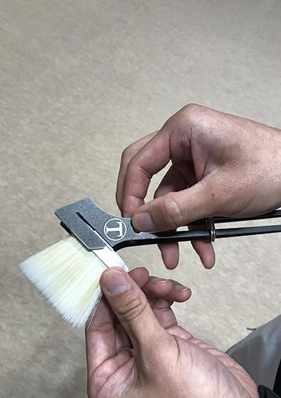 また、刷毛やローラーの出品を充実させていた大塚刷毛のコーナーで、ひと際関心を集めていたのが「SWITCH(スイッチ)」の出品だ。ヘッド部(毛玉部)を交換して使用できるという革新性で話題の同品に、溶剤・水性兼用の新たなヘッド「マルチバリュー」が登場。今回の展示会限定で販売を始めるとあって、来場者の注文が相次いだ。