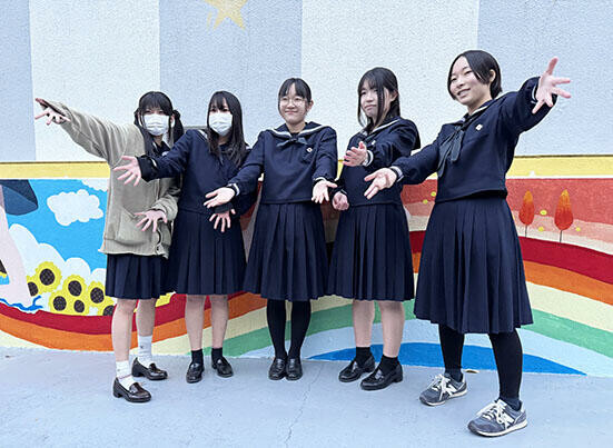同社の中山泰志社長は、「生徒たちは毎日夕方4時から6時まで、寒さもものともせず精力的に絵を描いてくれました。初めて触れた筆がわりの目地刷毛にもすぐに慣れ、細かい描写をこなすあたりはさすがに美術部の部員さん。壁画はとても印象深く、等身大の自分たちをしっかりと表現していて感動すら覚えました。このような色彩豊かなアートが街ゆく人たちの心も温かくしてくれるとの思いで、毎年この活動を続けています」と感慨深く語った。