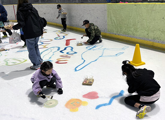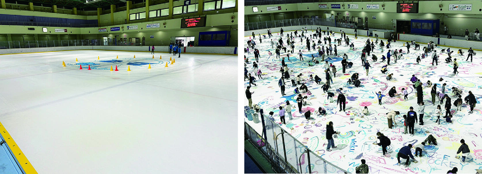 仕掛けたのは、オリンピアンで元ショートトラックスピードスケート日本代表の勅使河原郁恵さん。「アイスホッケーが盛んな北米で数年前から人気になっているイベントで、たくさんの人がスケートリンクに集まり、氷の上いっぱいに思い思いの絵を描いて楽しむイベント。人々とスケートリンクの近しい関係性がとても素敵で、私のホームリンクでもあるここ(江戸川区スポーツランド)でも開きたかった」と説明。施設管理者の江戸川区の賛同を得、実現の運びとなった。