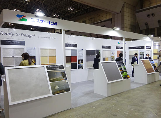 今回、「JAPAN SHOP」に出展した塗料メーカーはエスケー化研。店舗建築において空間を彩る高意匠性仕上塗材を中心に出展、湿式仕上材ならではの空間演出力を訴えた。