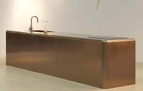 同社は、ドイツ生まれの特殊メタルコーティング材「Vero Metal(ヴェロメタル)」の国内正規代理店。液体金属(ヴェロメタル)をポルシェに全面塗装して注目を集めた昨年に引き続き、今回はヴェロメタルを全面コーティングしたキッチン「METAL KICHEN」を出展、存在感を示した。METAL KICHENは世界的な家具ブランドIKEAとのコラボによるもので、IKEAのキッチンの各パーツにヴェロメタルをコーティング。カッパー(銅)、ブラス(真鍮)など無垢の金属の質感と意匠でキッチンを演出、店舗デザインに冒険的な風を吹き込んだ。