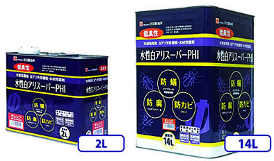 「水性白アリスーパーPHI」は、日本しろあり対策協会及び日本木材保存協会認定の木部処理用白アリ予防駆除剤。更にJIS K1571(木材保存剤)に適合した木材防腐剤を配合し、防蟻、防腐、防カビ機能を備えた多機能型製品として今年2月から販売を開始している。