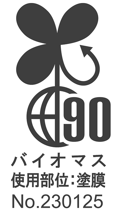 バイオマスマークの取得については、元々植物油を主原料とし、顔料を含まない製品特性であるとはいえ、樹脂設計や防カビ剤の選定など配合技術を駆使したことで、乾燥塗膜中におけるバイオマス重量90%超の製品化に成功。バイオマスのグレードを示す「バイオマスマーク90」のラベルを取得し、「環境性能の明示が難しい中、環境ラベルの活用は、市場から選択される上で有用だと考えている」と市場展開に弾みをつけている。