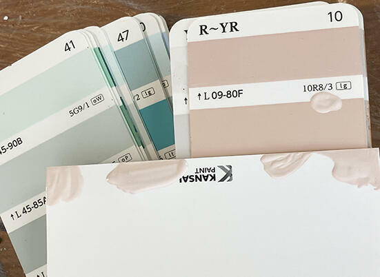 そして入社後、「この色をつくってみて」と渡された日塗工の見本帳の色にピタッと合わせた。誰に習ったわけでもないのに、白ベースに少しずつ原色を足して色を寄せていく手つきに、「一発でセンスがあると分かった」と佐藤社長。熱望していた人材が見つかった。