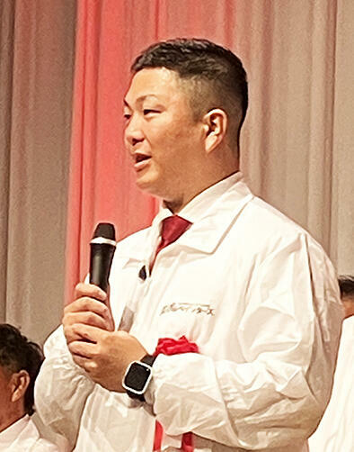2代目会長の宮嶋祐介氏(群馬県・ミヤケン)からバトンを引き継いだ佐々木拓朗新会長(千葉県・ユウマペイント=写真)は、「初代の安田会長から頂いた『魂の完全燃焼』というお言葉、そして2代目の宮嶋会長が行動で示された『幸せ大家族』という、この2つのテーマをしっかりと受け継ぎ、3代目執行部の体制をつくっていきます。目指すのは、出し惜しみをしない本気の社会貢献活動と、家族のような絆の同業者連携で自他ともに幸せを追求するペンキ屋集団。そのためにも、ここまで塗魂を育てていただいた皆様に、これからの私たちの成長を見守っていただきたいと思いますし、皆様とともにこれからも成長していきたい」と決意を述べた。