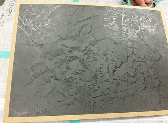 1回目は、柔らかいペースト状のモルクラフト主材を、コテで薄く塗りつけてテクスチャーをつける作業。コテの動かし方でいろんな表情が楽しめ、やっていて面白い。記者もコテ作業は初めてながら、柄や模様には正解はないのでそれなりにできた(と思う)。