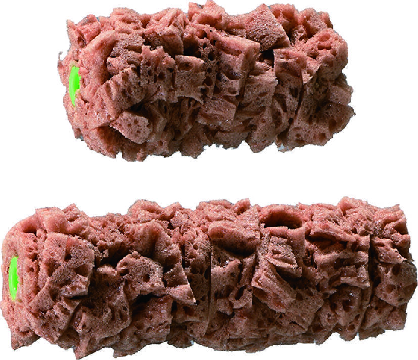 これに対し、同社は人工素材のウレタンフォームを基材に開発に着手。ブロックの形状や穴の大小など製法での工夫を重ね、天然の海綿特有のランダムな模様を表現できるローラーの開発に成功。ぼかしやエイジング、多色重ね塗りなど自然な濃淡の表現が求められる塗装仕上げにピッタリだ。