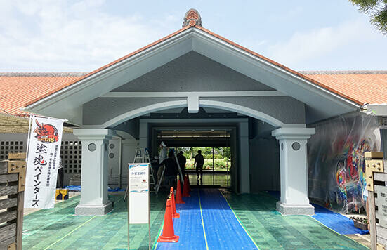 年が明けた今年1月に澤田さんたちは現場調査を兼ねて資料館を訪れ、普天間館長たちと打ち合わせ。「最初は、本当にそんな稀有な団体があるのかと半信半疑でしたが、ホームページでその活動内容とこれまでの実績を拝見し、本物だと確信。当初は、中庭を囲む壁だけ依頼する予定でしたが、建物の正面の壁も塗っていただけることになり、本当にありがたかった」と普天間館長。コロナ禍の難局を切り抜け、「きれいな建物でお客様をお迎えしたい」という願いが、思わぬかたちで叶った。