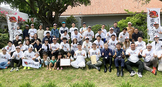 そして、最終日の午後、ひめゆり平和祈念資料館から感謝状贈呈のセレモニーが行われた。最後にあいさつに立った塗魂ペインターズの佐々木拓朗会長は、「戦後80年の節目の年に、平和への思いを強くするこのような貴重な施設の塗装に携われたことに、こちらの方こそ感謝を申し上げなければなりません。世界ではいまだ紛争が続き、ガレキになった光景をニュースなどでよく見かけますが、だからこそ街や建物に彩を与える塗装という仕事が意味を持つとも言えます。これからもどんどん街や建物をきれいに彩り、社会に貢献していきたい」と話し、今回のボランティア活動を締めくくった。