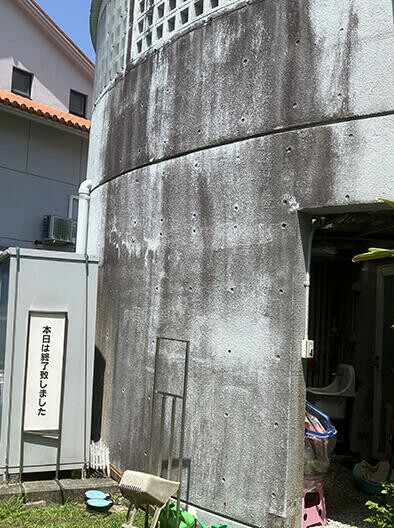 そうした中、普天間館長には気掛かりなことがあった。資料館の外壁の状態だ。沖縄特有の気候でカビが繁殖し、黒ずんだ外壁。コロナ禍が収束し、戻ってきた来館者をきれいな建物で迎えたいが、外壁の塗装にまで予算を回す余裕はない。そんな時だった。塗魂ペインターズとの出会いが訪れたのは。