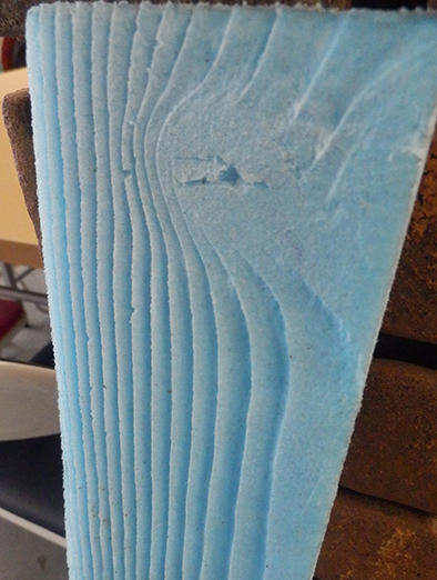 今回同社が開発した塗装用高意匠パネルは、レンガや石割、木目などモルタル造形のような立体形状の塗装下地を一般的に入手できるスタイロフォームで再現するもの。