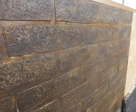 一方で、モルタル造形の人気が市場で高まっていることを受け、「高度なテクニックを要するモルタル造形を発泡スチロールのような素材で簡便に再現できないか」と着想、さまざまな素材や加工法を試し、約1年がかりでモルタル造形スタイルを再現した高意匠塗装パネルの開発に成功した。