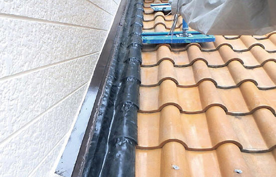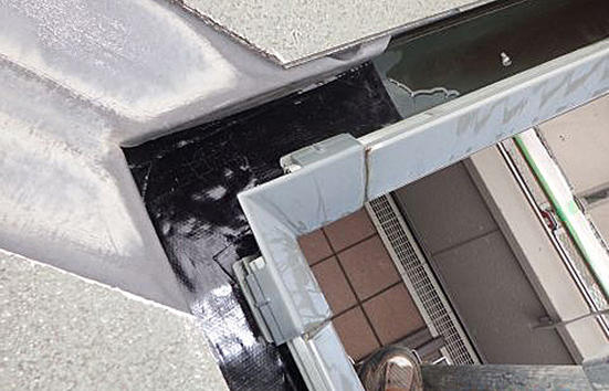 雨漏り修理を得意としている塗装店は、「このシートは自在に伸びるので複雑な形状の箇所でもピタッと貼れるのがポイント。笠木の角(端部)やベランダの立ち上がり、屋根と壁の取り合いなどの出隅、入隅もしっかりとカバーし、頑強に防水してくれる。雨漏り修理シートとしては別格」とコメント。雨漏り修理業界の信頼も厚い。