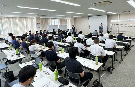 イサム塗料東京支店(支店長・齊藤滋治氏)は6月22日、同支店において2024年度特約店研修会を開催した。当日は約40名が参加し、先進安全自動車に関する技術的課題や環境法令を解説した他、実演塗装を交えて新製品を紹介した。