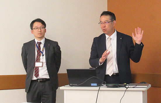 今回は粉体塗料の下地として重要な金属表面処理(前処理)をテーマとして、日本ペイント・サーフケミカルズの鈴木謙吾氏と中尾健司氏による「環境配慮型塗装前処理のご紹介-水性塗布型1コート技術-」の講演が行われた。