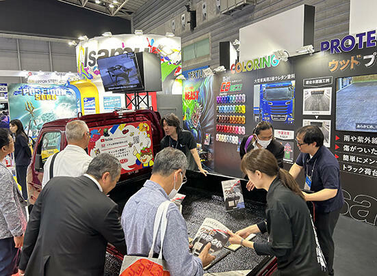 この他、4月に上市したマット(艶消し)塗装専用トップコートクリヤー「ECO ROCK Full Matt Clear」も出展。「乗用車と同様にトラックのマット人気も高い」と需要獲得に手応えを示した。