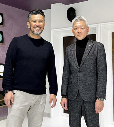 門脇社長と田島社長が知り合うきっかけとなったのが、イタリア製特殊塗装の水性塗料ブランド「VALPAINT(バルペイント)」。カドワキカラーワークスが内装用の意匠性仕上げの取り扱いを始めたことにより、門脇社長らがバルペイントの施工研修を受講したときに講師を務めていたのが田島社長だった。金属塗装と内装塗装で領域は異なるものの、「意匠性の可能性を信じる志や仕事のスタイルで共感することが多かった」(門脇社長)として、連携を高めていき、グループ化に至った。