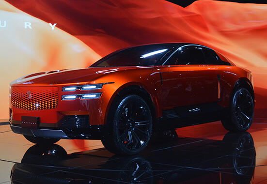 SUBARUはBEVのコンセプトモデル「Performance-E STI concept(パフォーマンスE STIコンセプト)」を披露した。空力性能を追求しつつ、ダイナミックで立体感豊かな力強い造形の実現がデザインのポイント。