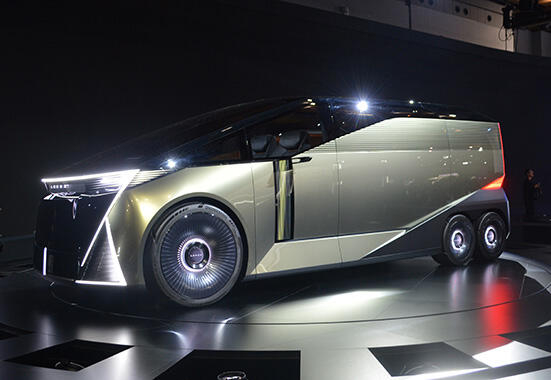 室内空間の最大化を図るため6輪仕様とした「LEXUS LS CONCEPT(レクサスLSコンセプト)」も公開。自然の温かみを感じさせる色合いをベースに、微細な光輝顔料を緻密に配向することで洗練されたメタリック感を付与している。「フラットでありながら光を拾ってくれる意匠になっている」と担当者。