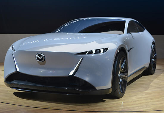 マツダの毛籠勝弘社長は、2035年の目標を「走るほどにCO2を減らす未来」と説明。その実現の鍵として、カーボンニュートラル燃料を用いた走行と、MAZDA MOBILE CARBON CAPTUREと呼ばれる排気からのCO2回収技術がある。これらを搭載したビジョンモデルとして公開されたのが「MAZDA VISION X-COUPE(ビジョン クロスクーペ)」だ。