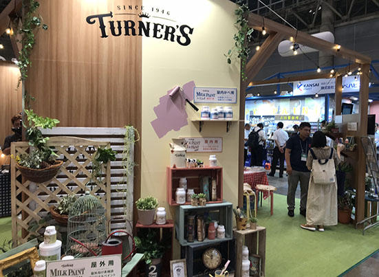 「ミルクペイント」のヒットでDIY分野の有力メーカーに躍り出たターナー色彩は、その分野で多くのファンを獲得。今回もブース内で展開した小物ボックスやドアノブプレートのペインティングワークショップには順番待ちが出るほどの来場者が押し掛けた。