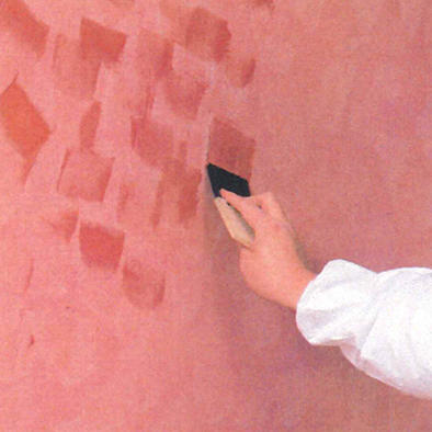 Art Seriesの代表的な製品が大理石調塗材の「MARMOTTO(マーモット)」だ。コテで主材を塗りつけて特殊な刷毛でパターン付けし、ヘラで磨きをかけていくと魅惑的な輝き(ツヤ)を放つ存在感抜群の壁になる。フラミンゴ、ローズ・ピンク、ヴェニット、ブロンドなど建築デザインのイマジネーションを膨らませる12の色調を用意。商業建築の内装での採用が増えている他、最近ではハイエンドな住宅にも活躍の場を広げている。