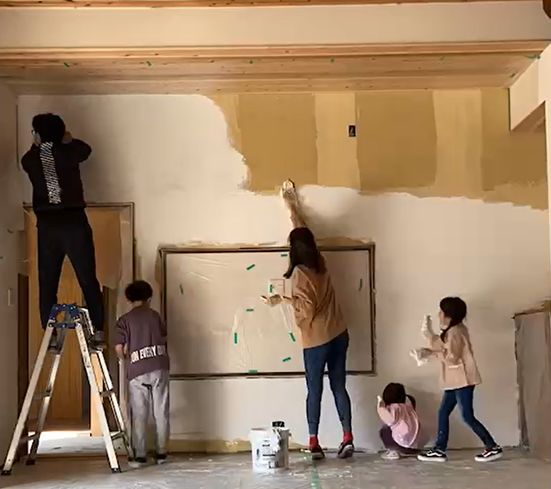 「皆さん、初めてのことなので当然最初は戸惑っていましたが、『この壁に好きなように塗ってください』と、あえて指導めいたものはしませんでした。この材料に塗り方の正解・不正解はなく、塗りあがった表情がその家族にとっての正解だと思っていましたので、『ここは勢いで!』と後押ししました」と中原さん。