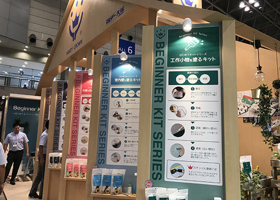 ハンディ・クラウンは今回、「ビギナーズ キット シリーズ」を新商品として出品した。「DIYブームによって部屋の壁や木工作品などさまざまなシーンで塗装をする方が増えているのを実感しています」と担当者。ただ、目的の塗装に対して必要な用具に迷ったり、間違った購入をするケースも多い。そこで「はじめての塗装に最適な道具がそろったお得なキット」として発売することにした。
