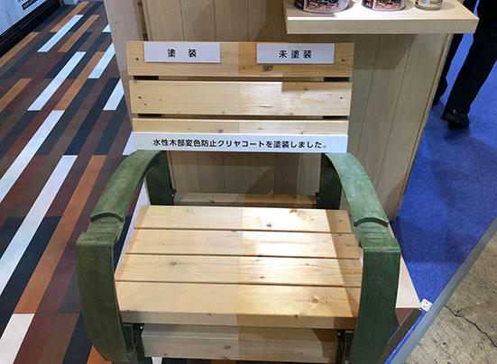 アサヒペンは今年8月に発売したばかりの「Matte Color(マットカラー)」、「水性木部変色防止クリヤコート」の2製品を出展。