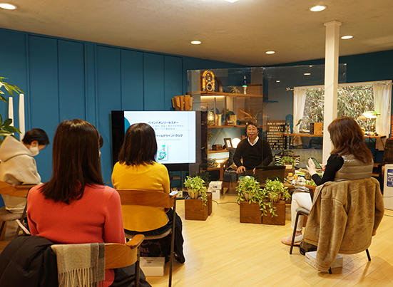 例えば「塗料」に関してはそのルーツから解説。明治時代の初期に毒性の無い白粉をつくることから国産塗料の開発が始まったというくだりでは、人気のテレビドラマのシーンを引用して説明、受講者(大家さん)の「そうだったんだぁ」という関心をうまく引き出している。また戦後、輸入塗料に頼らざるを得なかったときの塗料の価格をクイズ形式で出題。東京・田町の一坪の値段が2円だった当時、輸入塗料1缶が3円もしたという答えには当然のことながら驚きの声が挙がる。