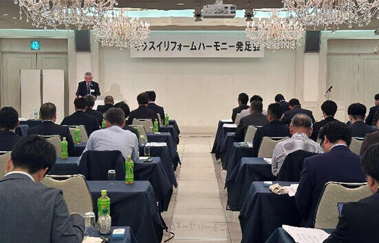 菊水化学工業は5月23日、同社の新たな責任施工組織「キクスイ リフォームハーモニー」の発足会を名古屋市の会場で開催した。発足メンバーの加盟店29社を中心に全国から多くの施工会社が参集、新たな船出に気勢を上げた。