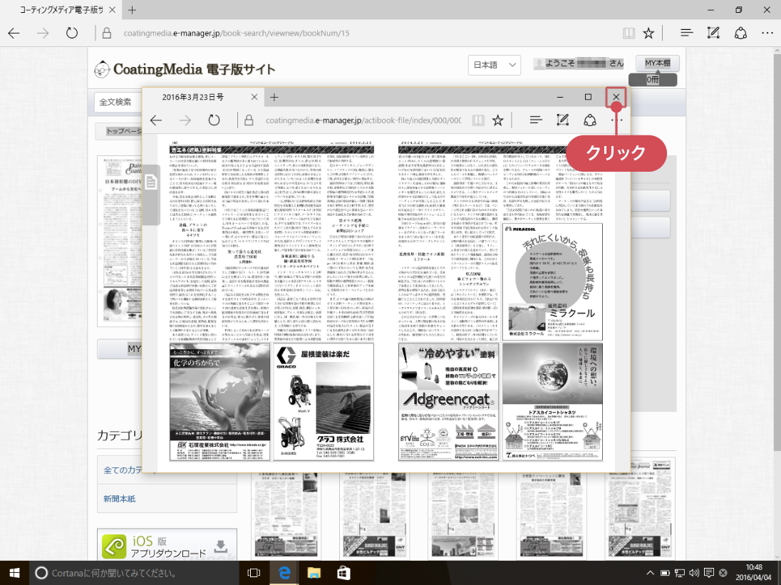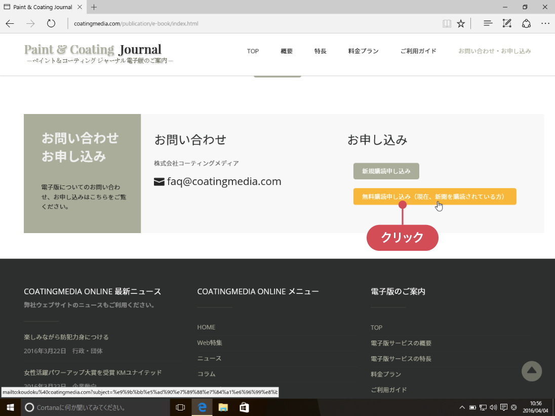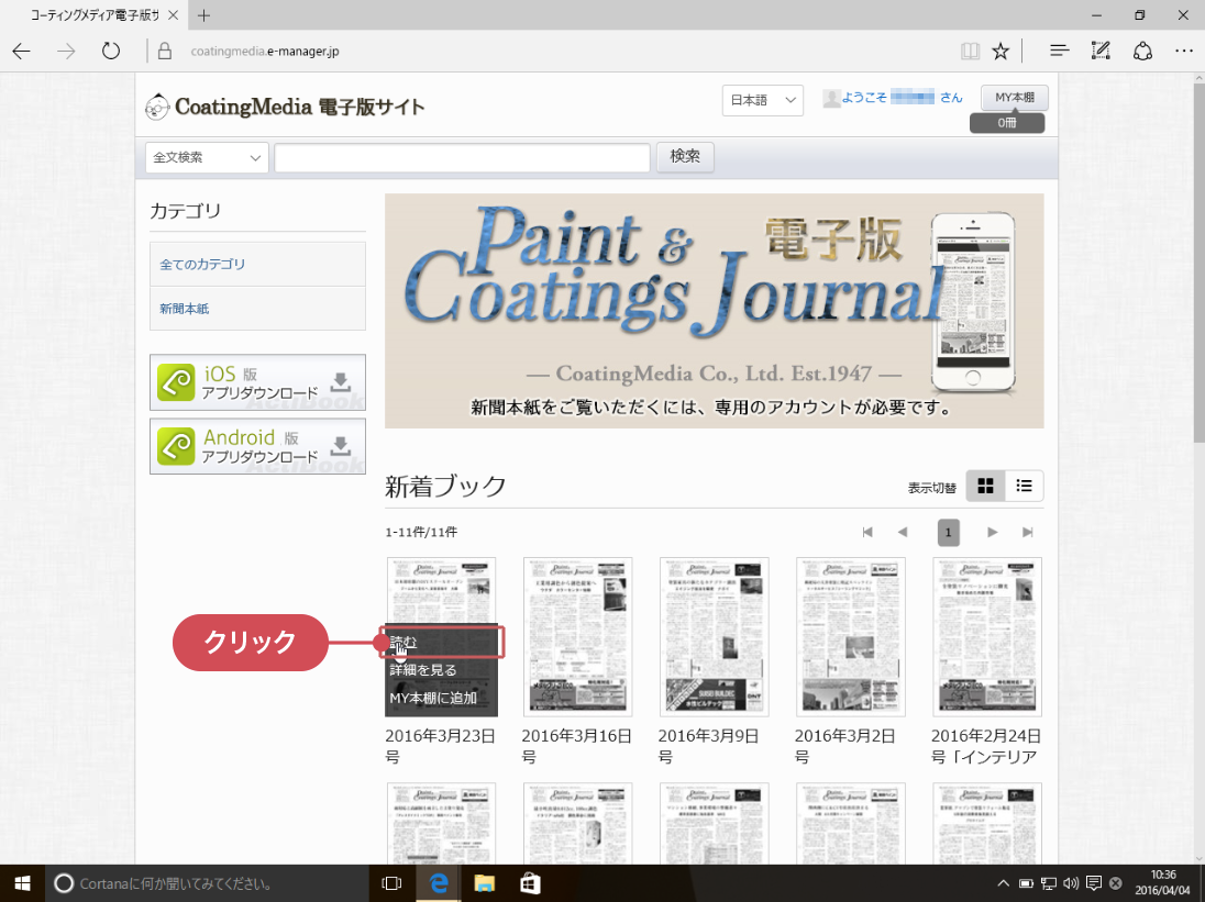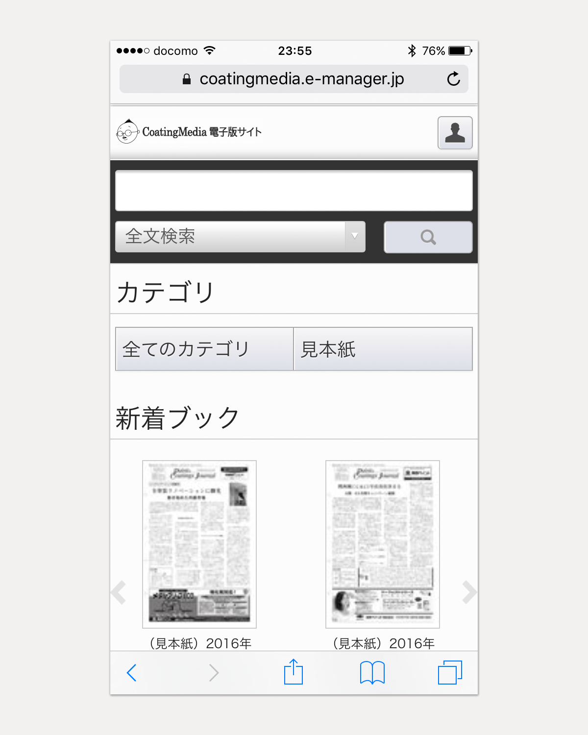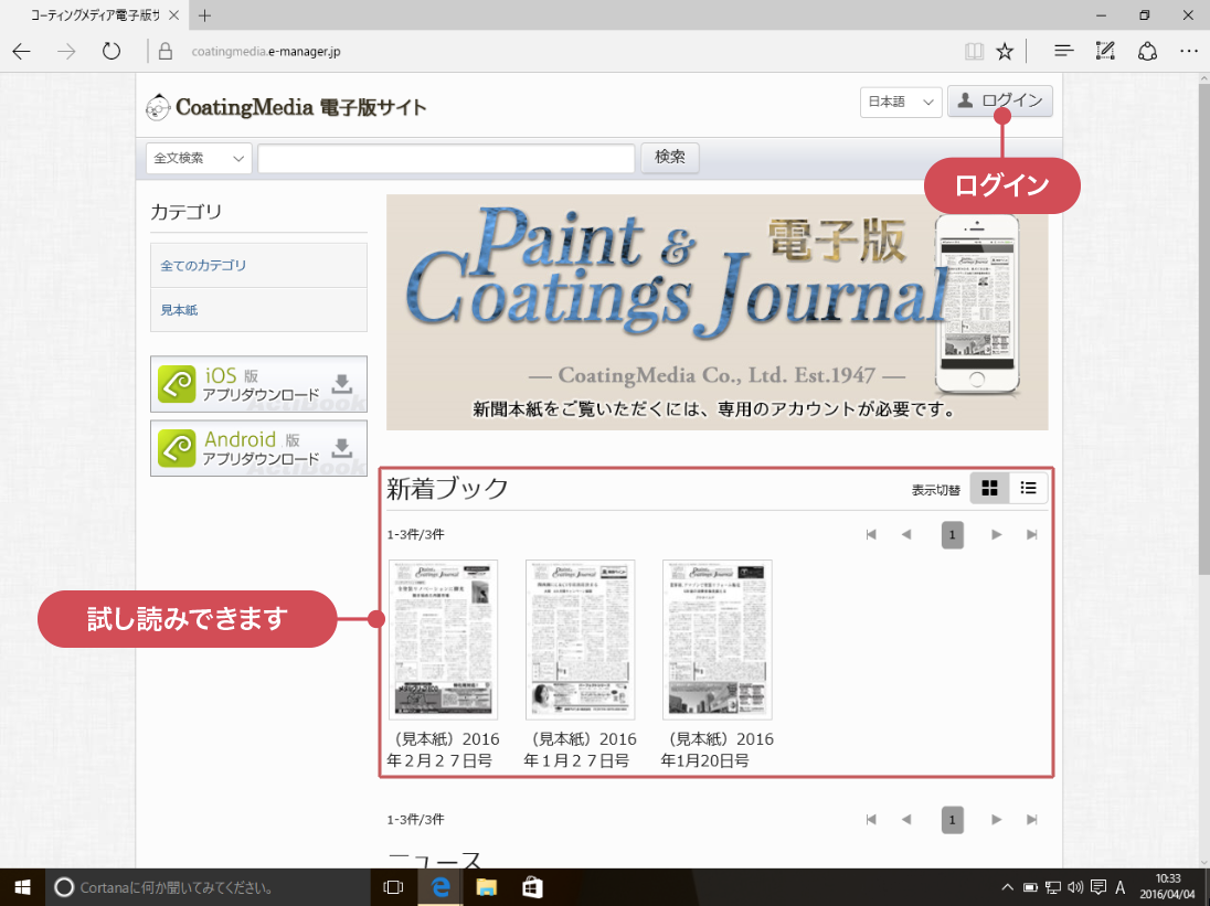 届いたURLにアクセスすると CoatingMedia電子版サイト のトップページが開きます。