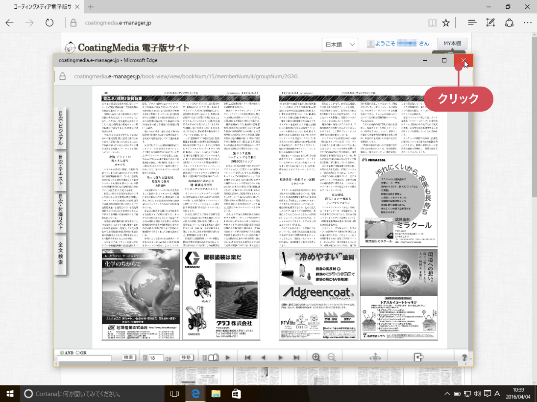 電子版の1ページ目が画面に表示されます。