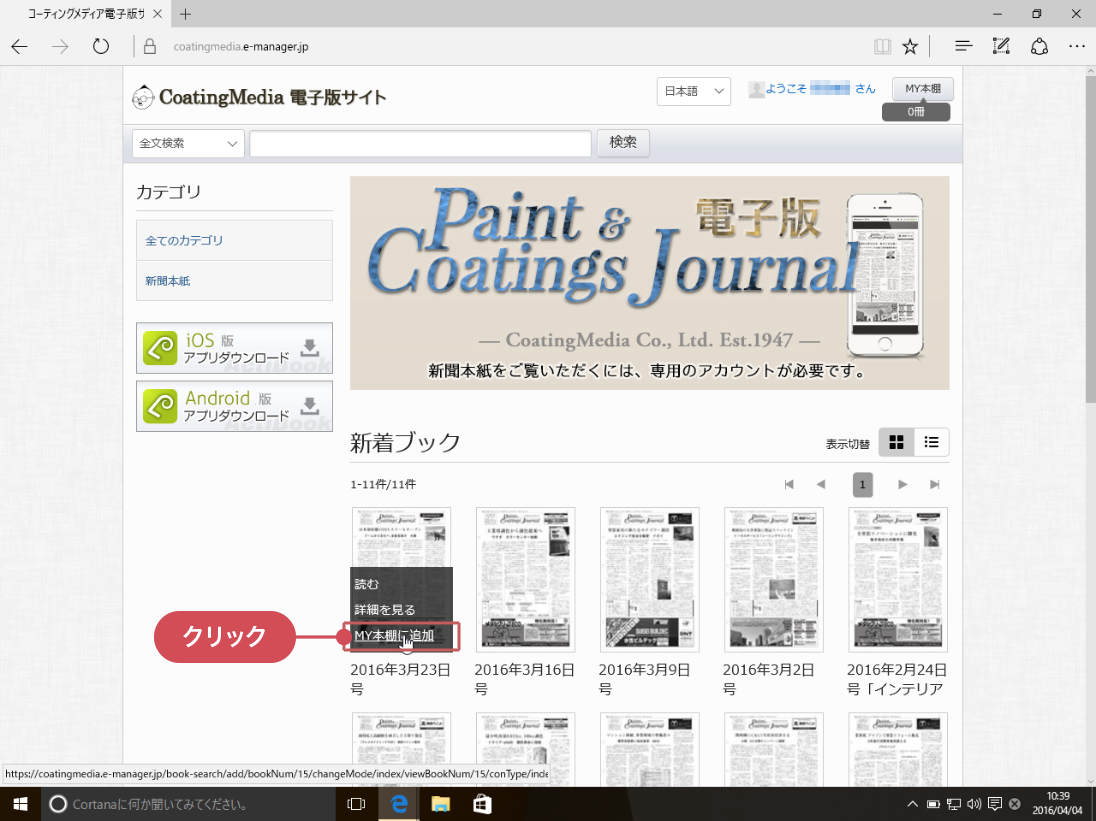 [MY本棚に追加]をクリックすると、指定した電子版がMY本棚に追加されます。