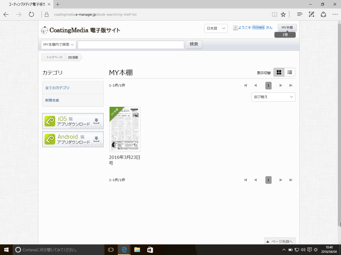 画面右上の[MY本棚]ボタンをクリックすると、追加した電子版の一覧が表示されます。