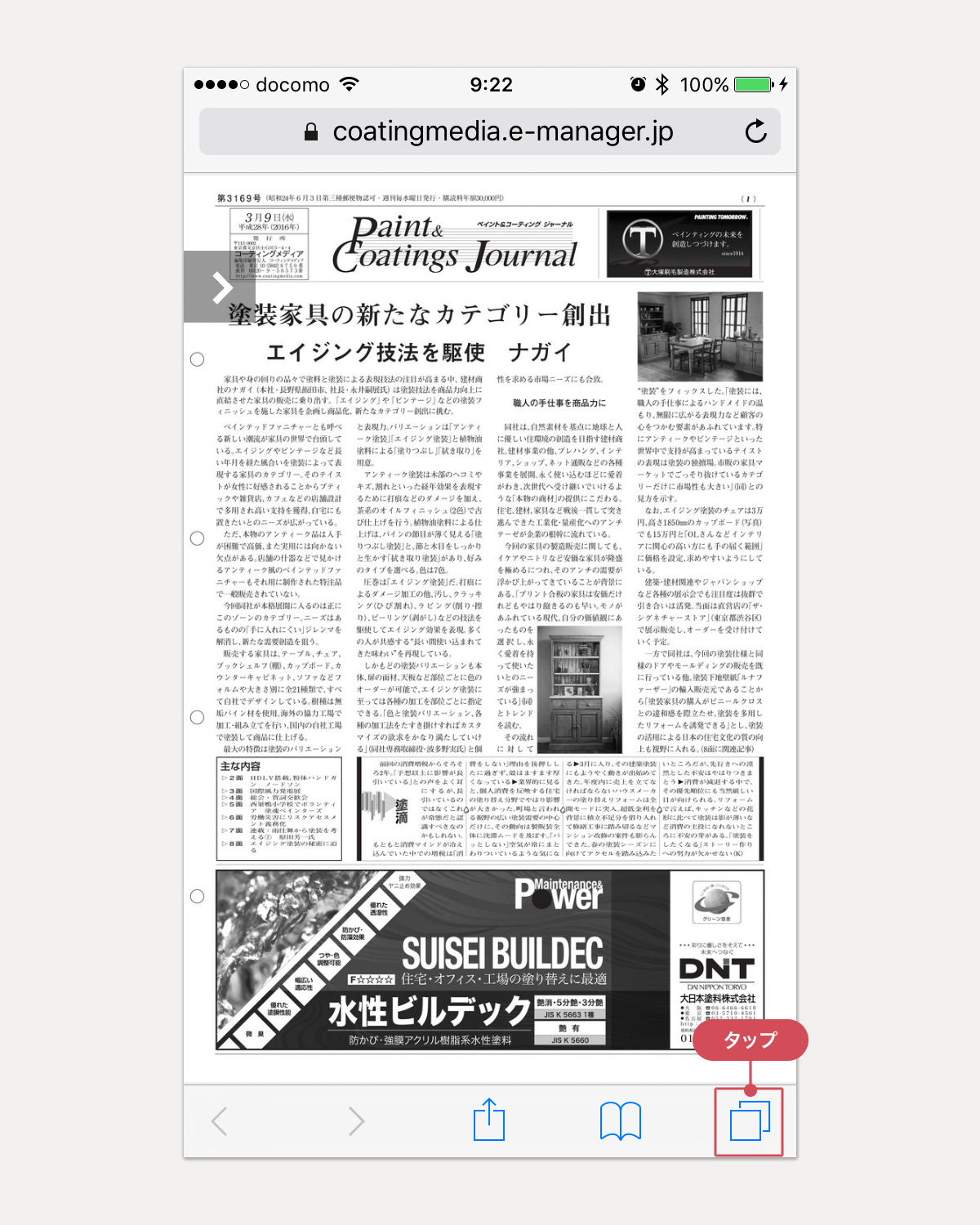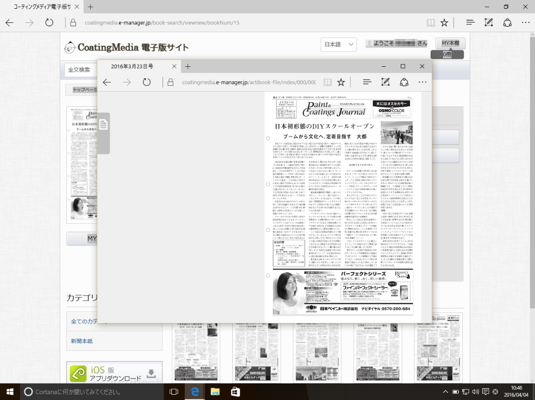 お手元のパソコン、スマホ、タブレット端末などを使って、弊社発行の新聞『ペイント&コーティング ジャーナル』を、いつでもどこでもご覧いただけます。