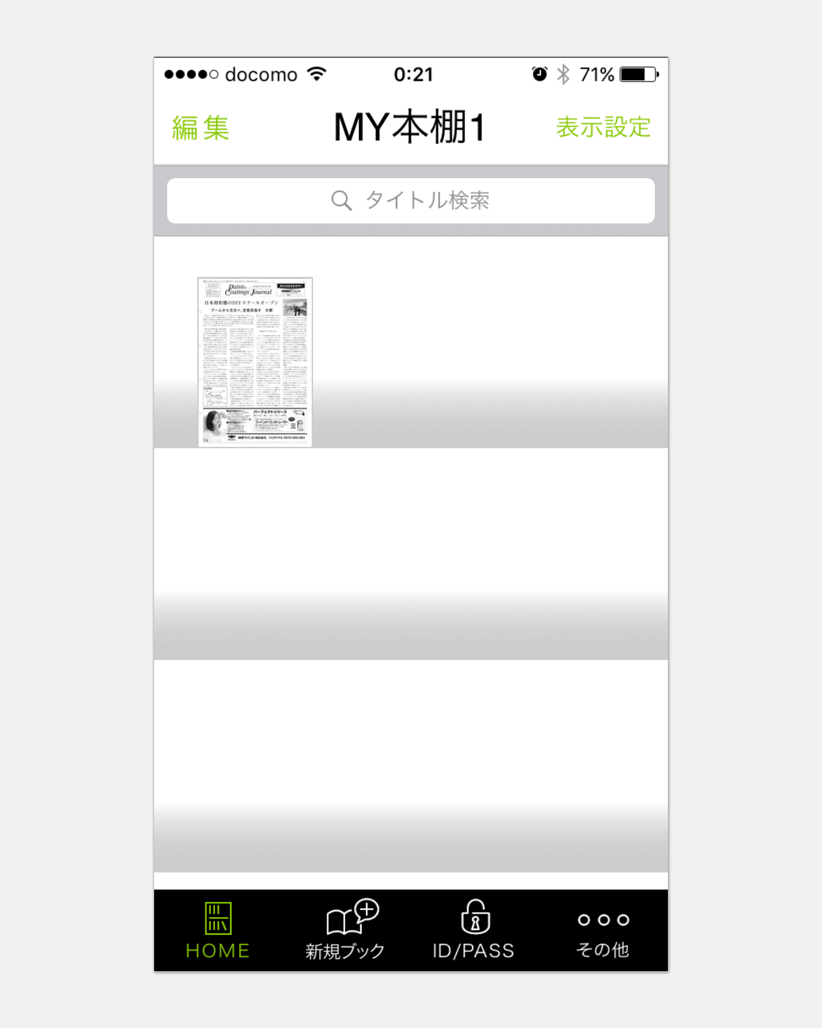 ※ MY本棚から削除したいときには、MY本棚1の画面の左上の[編集]メニューをタップした後、削除したい電子版の上をタップしてチェックマークを指定してから、右上の[ゴミ箱]をタップします。